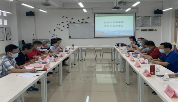 2020年7月8日下午14:00,经济与贸易学院经济统计学、金融工程、税收学、投资学、国际经济与贸易、经济学专业评估考察会在东莞校区格物楼2B501室顺利举行。由中山大学新华学院副校长杨卫华,教学督导陈建钢、黄英姿,太阳集团tyc138学质量评估处处长王栋慧,太阳集团tyc138学质量评估副处长陈建锋,太阳集团tyc138学质量评估处老师蔡文燕组成的评估专家组,以及经济与贸易学院院长袁持平、副院长周开国(线上)、副院长方建国、副院长黄国龙和各专业教师代表参加了此次会议,会议由陈建钢督导主持,共分为四项议程。