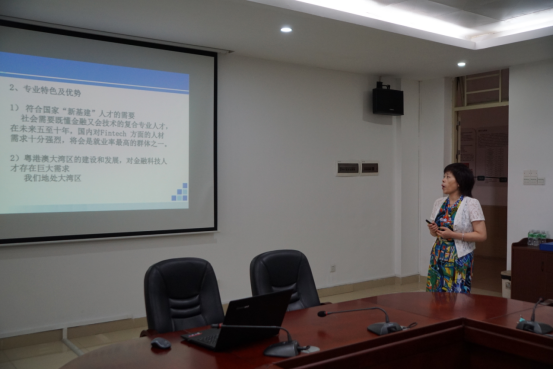 我院金融科技专业负责人毕秋香副教授分别向各位专家介绍了金融科技专业的基本情况、专业特色及优势、专业建设情况和专业发展计划,提出了在招生不到一年时间的情况下,专业建设过程中遇到的困难与不足。专家组听取金融科技专业汇报后,大家对金融科技专业的发展前景表示肯定,并提出金融科技专业建设需要加强和重视高水平的师资引进,应利用好现有实验室资源,加快实习合作单位开拓,构建专用实验室,做好迎接教育部的抽查和评估的准备。